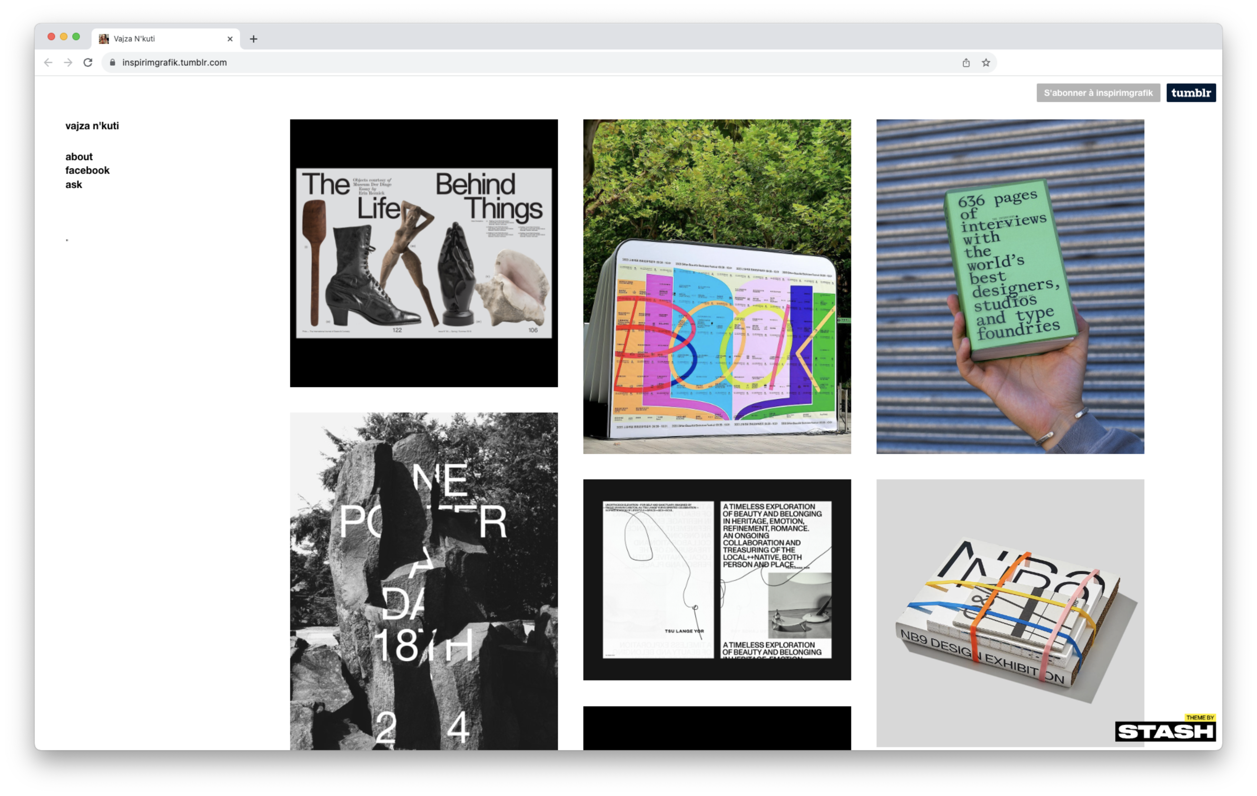 Some interviewees also quote recurrent platforms and sources of inspiration, using models of subscription, to maintain a controlled curated news feed center when subscribed pages update new content. Via RSS (Really Simple Syndication) technology for American artist Baker Wardlaw, or specific blogs via Tumblr for industrial designer Aurélie Vial:22