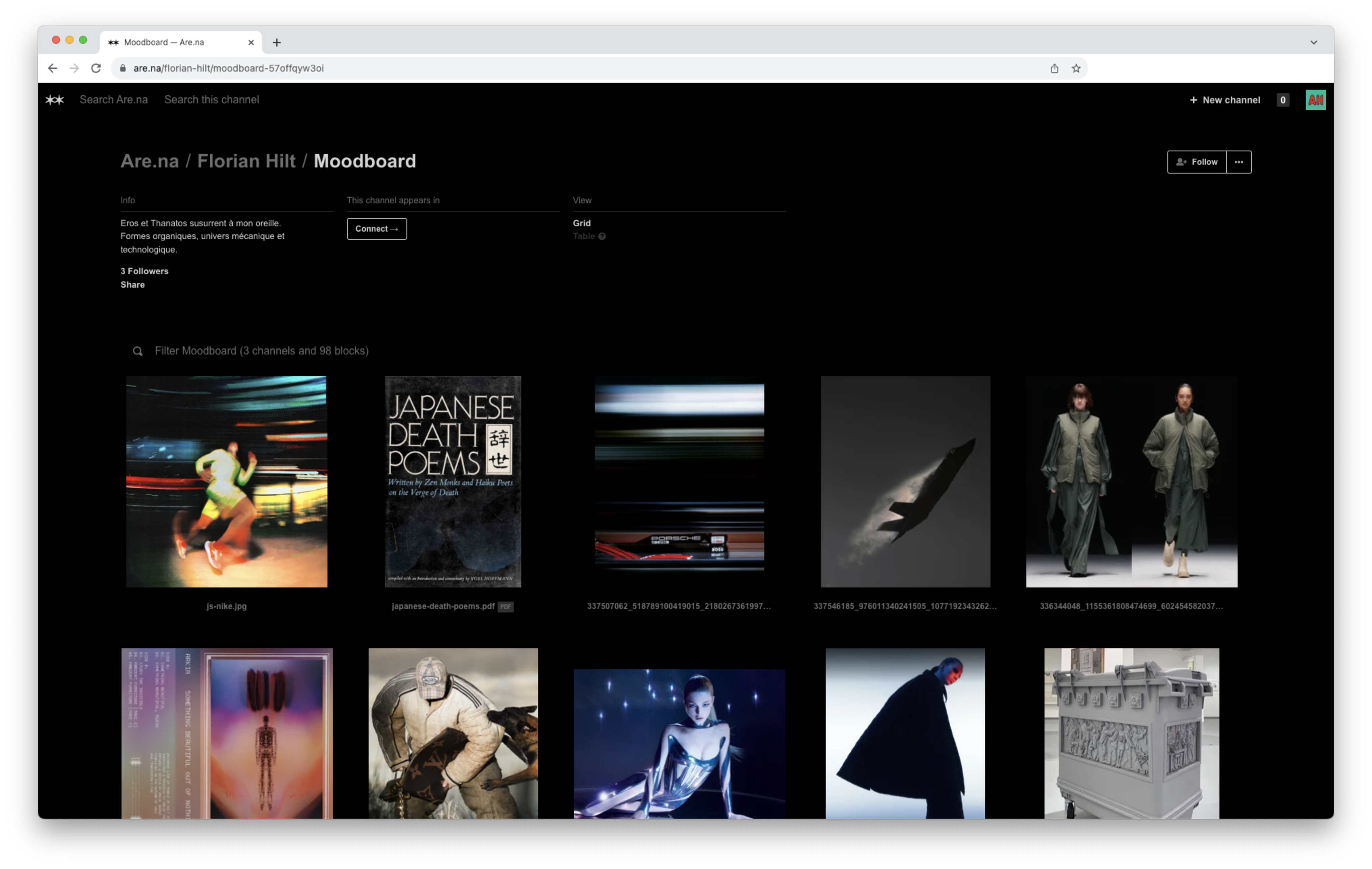 (Open Channel) [online] https:/ [consulted: 2023.11.25] &/ www .Are .na /Are .na -commons /how -do -you -use -Are .na #8617;& #65038; HILT, Florian, 2023, Moodboard, Are