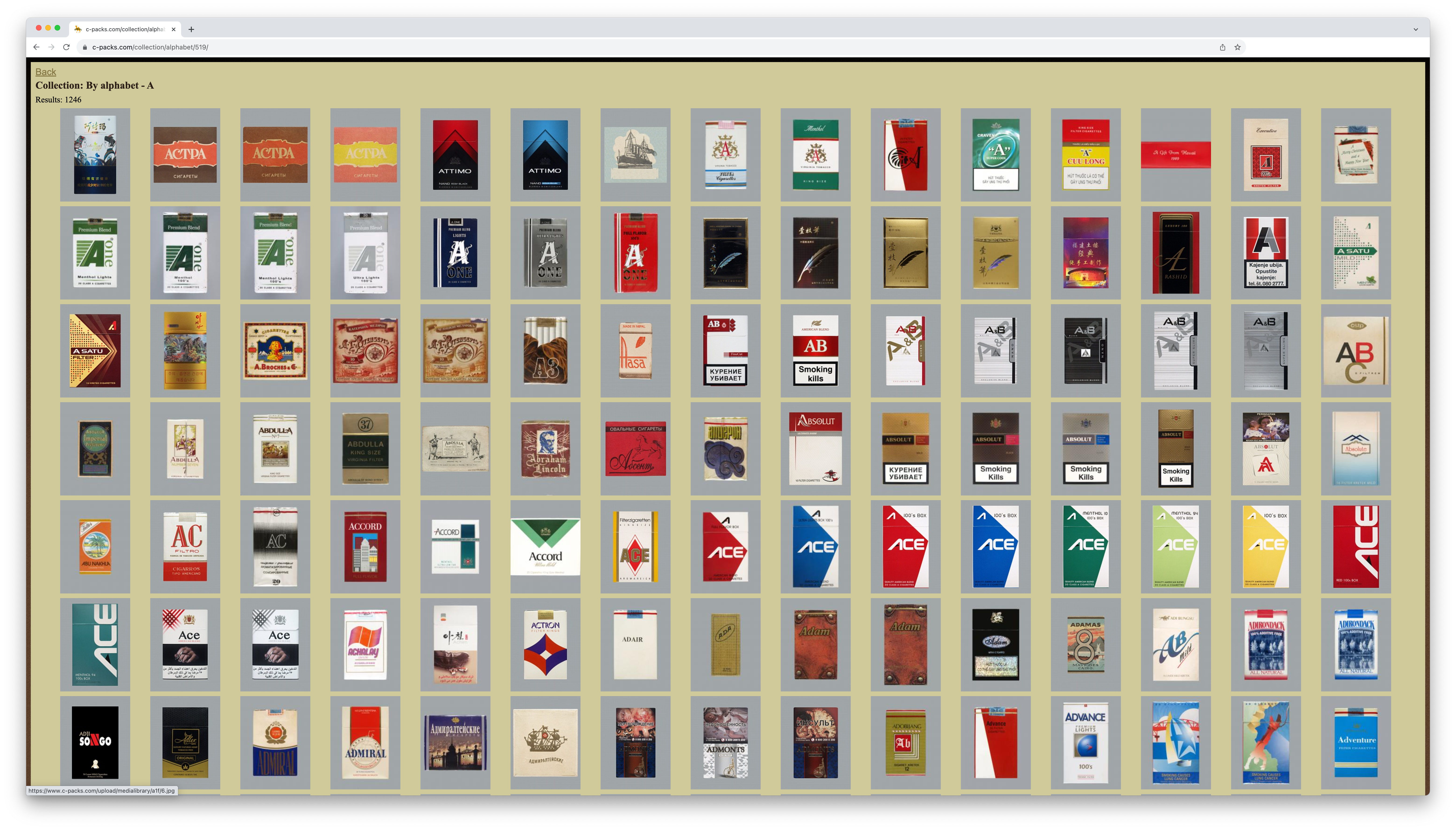 / [accessed: 2023.11.25] &/ gemmacope .land /writing / #8617;& #65038; CHERNISHEV, Innokenty, Private Collection of Cigarette Packs, C-PACKS [online] https: