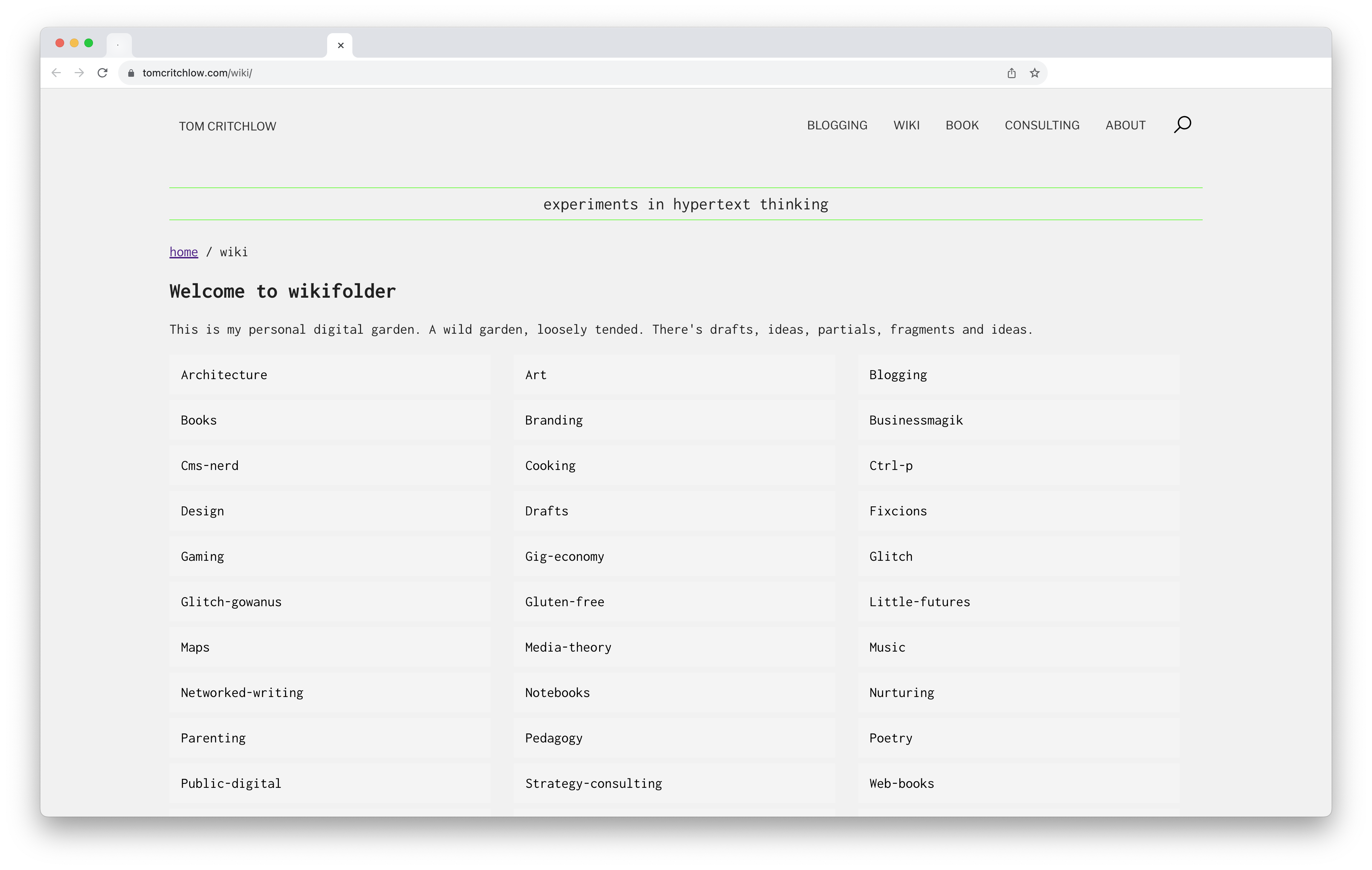 https:/ [consulted: 2023.11.25] &/ busterbenson .com /piles #8617;& #65038; CRITCHLOW, Tom, Welcome to wikifolder, Tom Critchlow, [online] https: