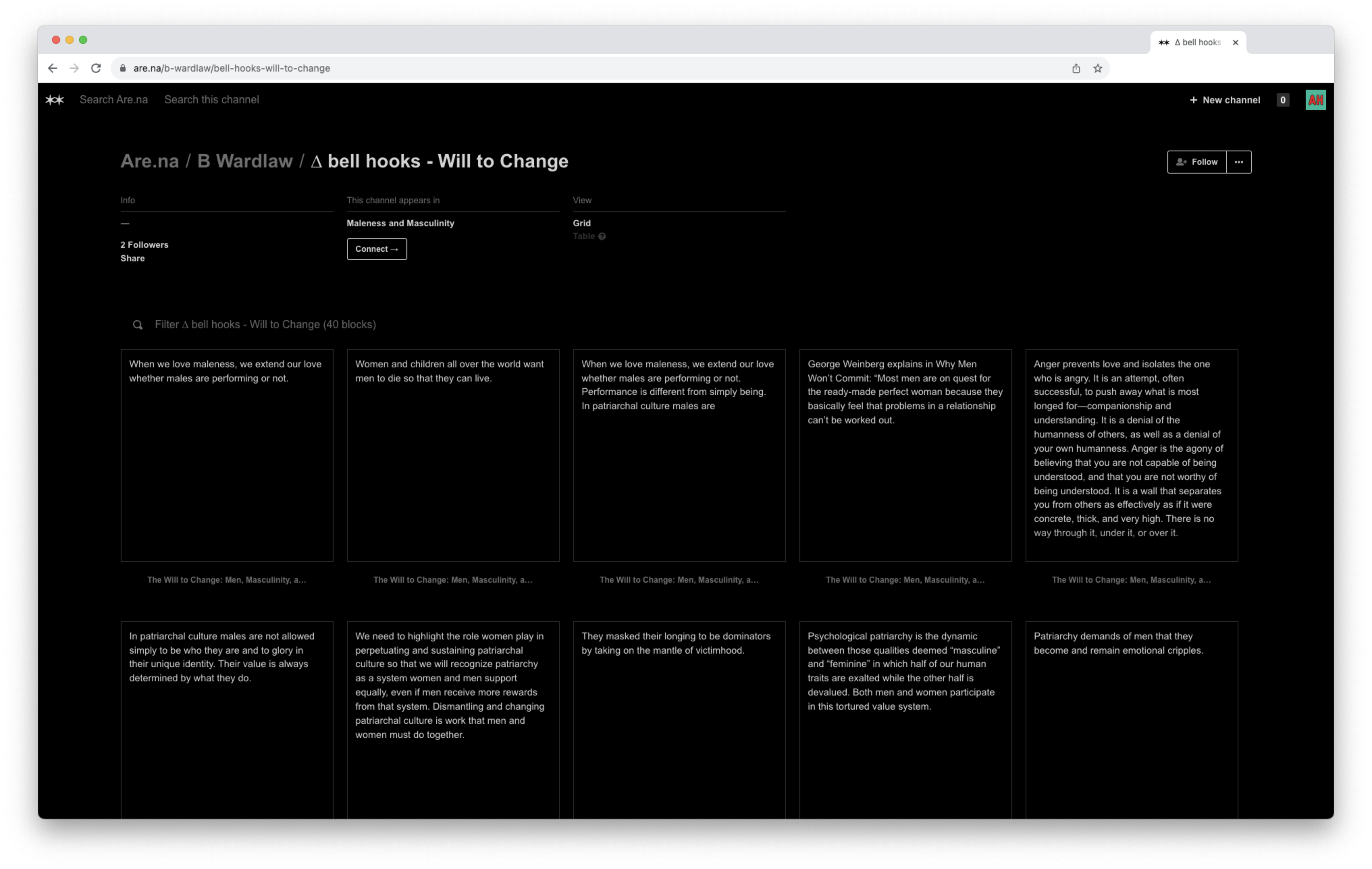 .na (Public Channel) [online] https:/ [consulted: 2023.11.25] &/ www .Are .na /b -wardlaw /bell -hooks -will -to -change #8617;& #65038; COPELAND, Gemma, 2023, Gemma Copeland [Online]