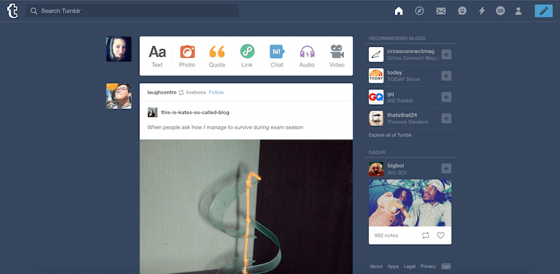 The reason I was using Tumblr was the shortcuts. I could go with “J” and “K”. I think “K” was to save it, and I could go very quickly. I couldn’t go with the mouse. –Daniel Robert Prieto